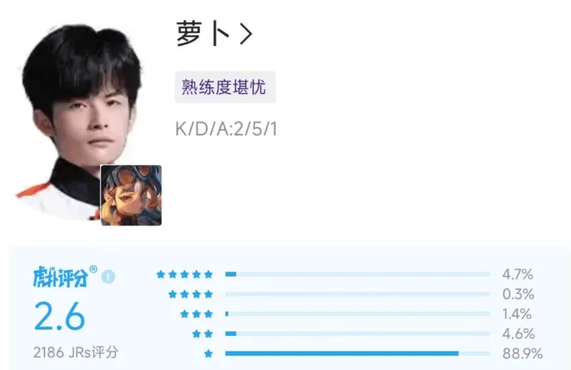 對陣北京JDG,唯一輸?shù)舻囊痪郑}卜蚩姹打出個2-5-1