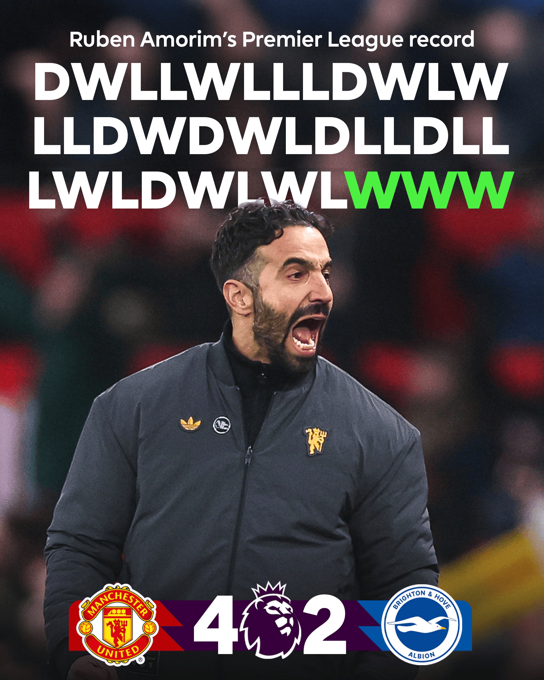 [流言板]阿莫林執(zhí)教的前33場英超曼聯(lián)從未連勝,如今則獲得3連勝