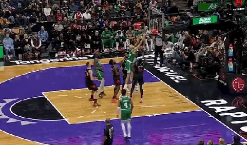 NBA常規(guī)賽,凱爾特人客場(chǎng)對(duì)陣猛龍的快速比賽正在進(jìn)行中。