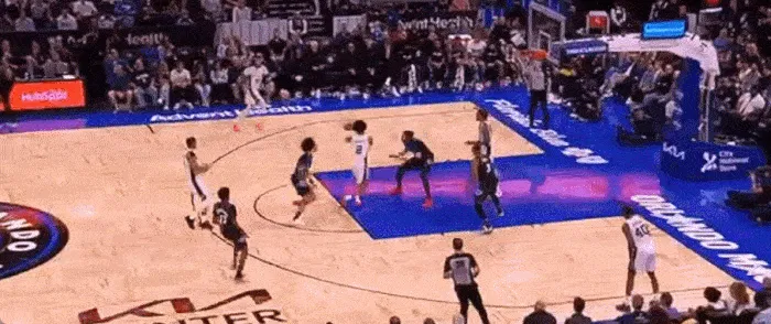 同樣是突破過程中 發(fā)現(xiàn)魔術(shù)的防守漏洞 直接傳過去