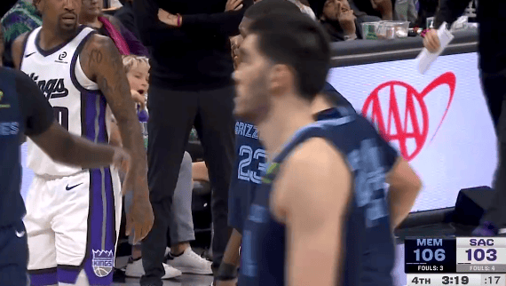 虎撲12月01日訊 NBA常規(guī)賽,國(guó)王對(duì)陣灰熊的上籃比賽正在進(jìn)行中。