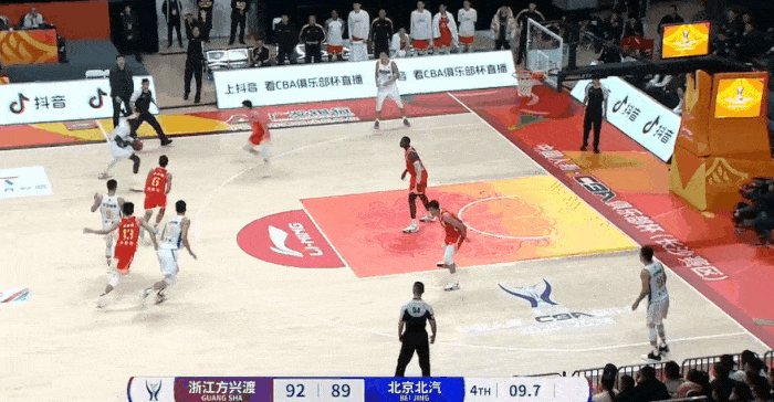 第四節(jié)比賽,接球京分張知垚底角接球三分強(qiáng)投不中,分強(qiáng)北京3分惜敗廣廈。惜敗