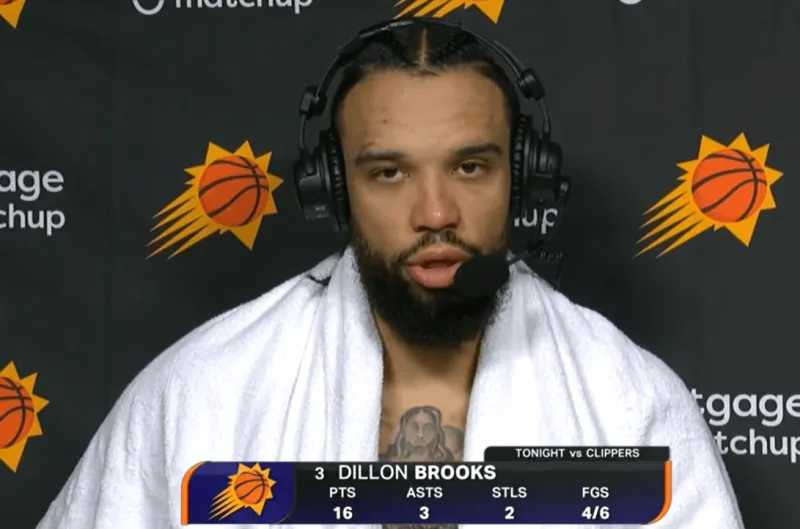 本場比賽,太陽球員狄龍-布魯克斯出戰(zhàn)27分鐘,投籃6中4、三分3中2得到16分2籃板3助攻2搶斷。