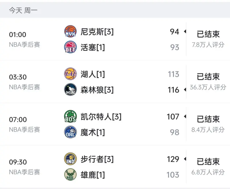 [流言板]今日四組2-1系列賽領(lǐng)先球隊(duì)皆獲勝,板今全部取得3-1拿到賽點(diǎn)由虎撲籃球資訊 發(fā)表在籃球資訊 https://bbs.hupu.com/502