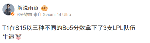 虎撲11月02日訊 S15淘汰賽,TES 0-3 T1。賽后LPL官方解說(shuō)主持發(fā)文。