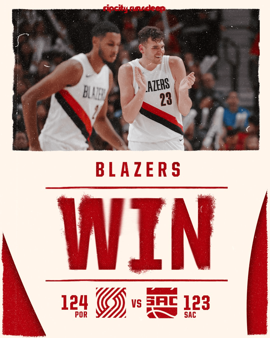開拓者官方更新社媒分享賽果海報。賽果