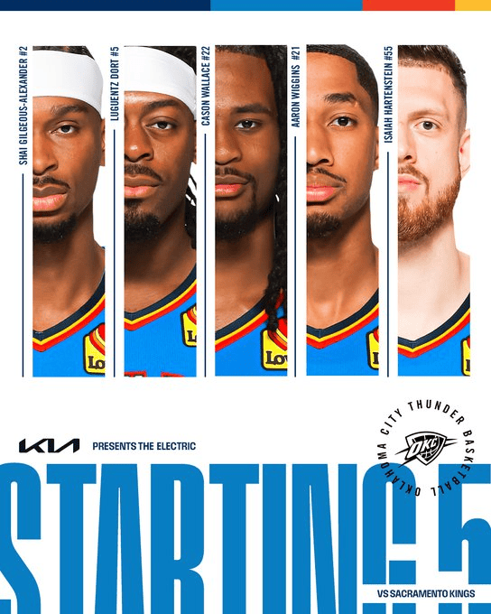 賽前,雷霆官方曬出今日的首發(fā)陣容: