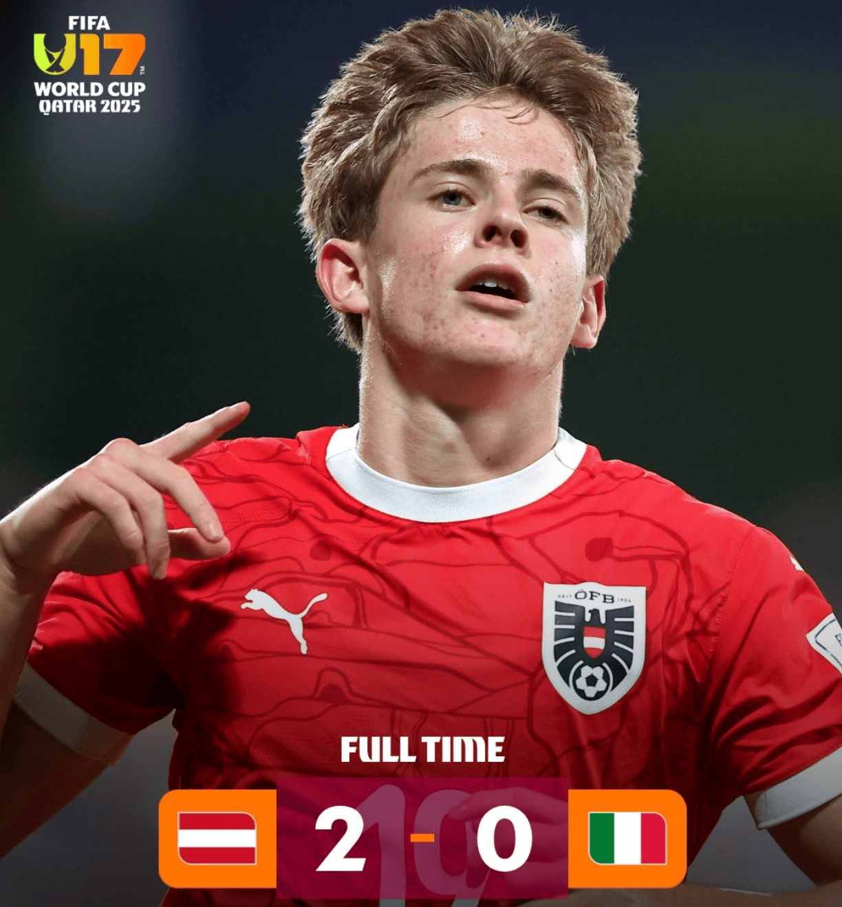 對于意大利U17來說,本屆賽事仍具有歷史意義——這是他們在U17世界杯上的最佳戰(zhàn)績,但最終倒在四強無緣決賽。奧地利則迎來隊史里程碑之夜,即將向隊史首個U17世界杯冠軍發(fā)起沖擊。