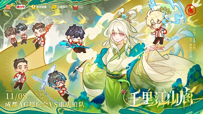 [預(yù)告]成都AG超玩會(huì) vs 重慶狼隊(duì)賽前海報(bào): 阿銀的名畫(huà)展·千里江山圖