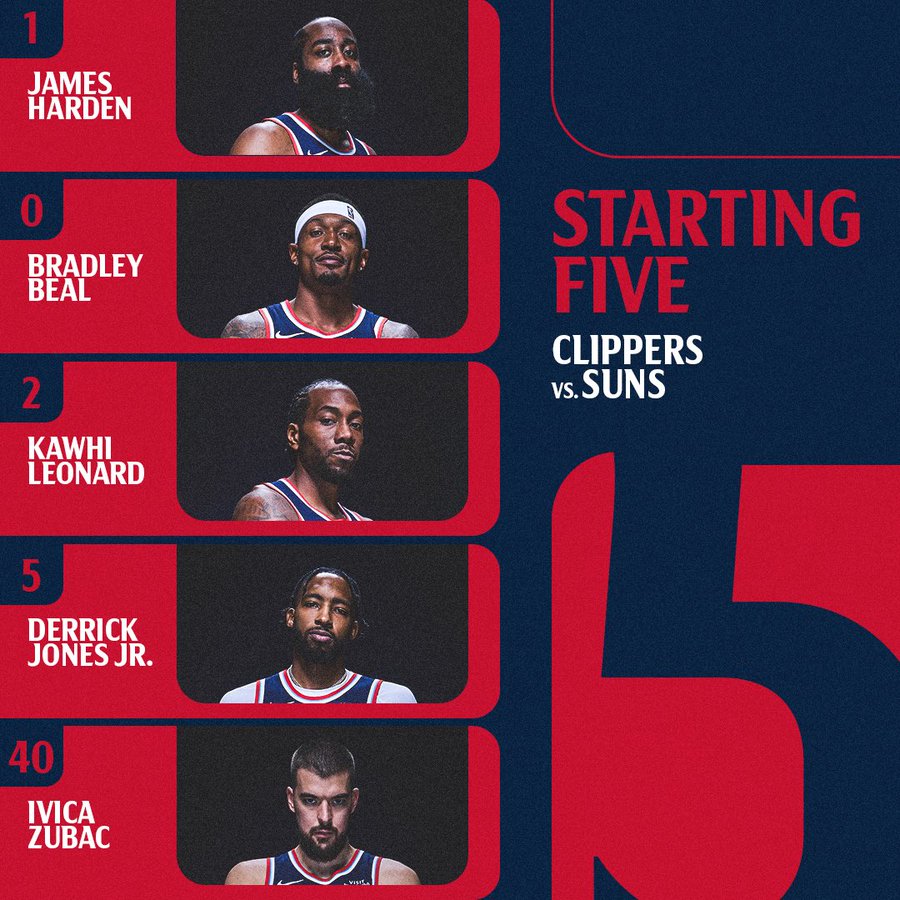 [流言板]不變!快船首發(fā):哈登、比爾、倫納德、小瓊斯、祖巴茨