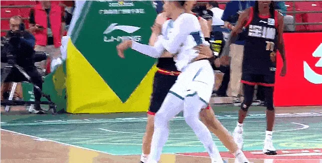 比賽第二節(jié),疆發(fā)進(jìn)折半場(chǎng)剩余最后2秒新疆發(fā)底線(xiàn)球,底線(xiàn)疊壓巧妙配合后由伊福投進(jìn)折疊壓哨三分。球伊