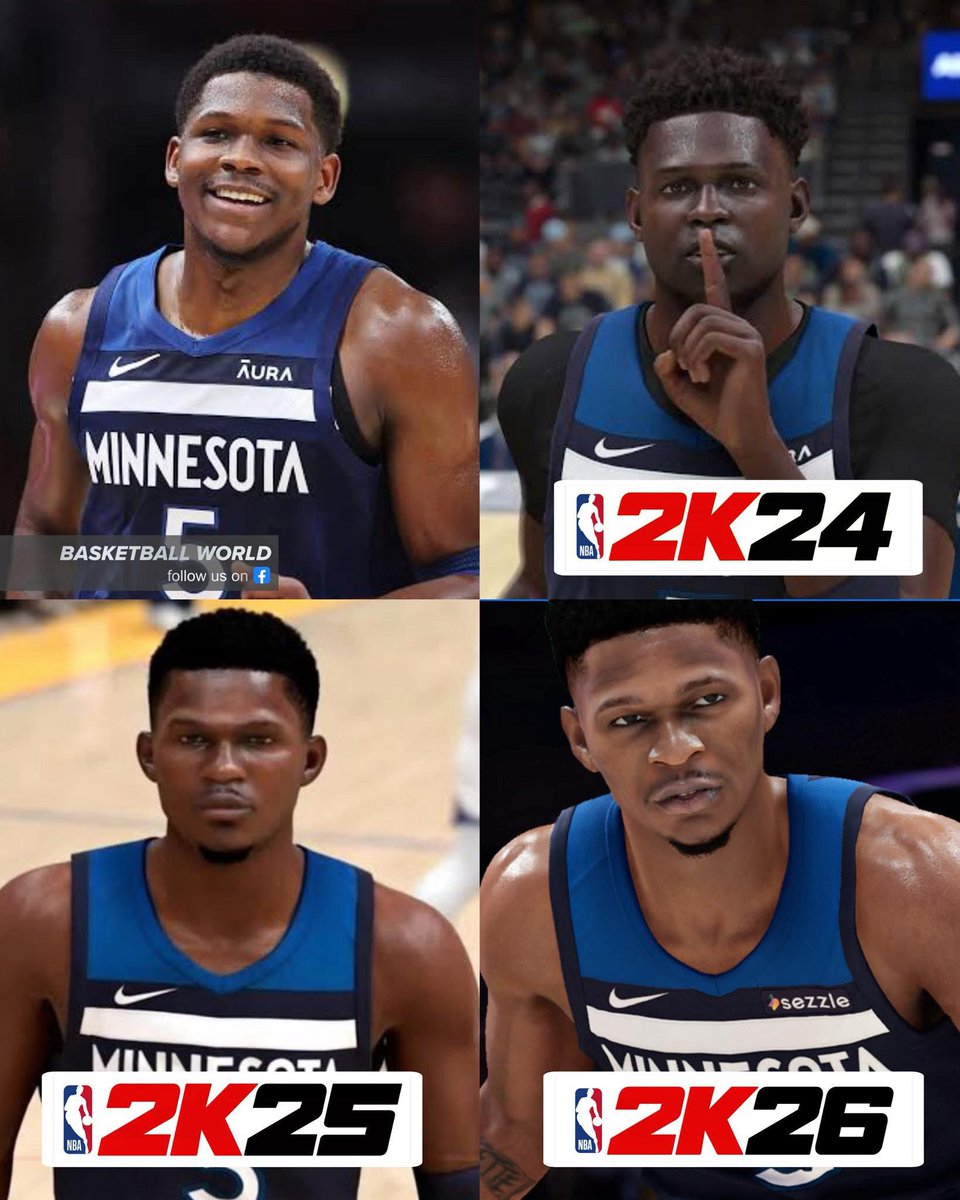“知名籃球游戲《NBA 2K》仍未能準(zhǔn)確呈現(xiàn)安東尼-愛德華茲的板N部建面部建模 ??。”NBA Memes附文道。準(zhǔn)確
