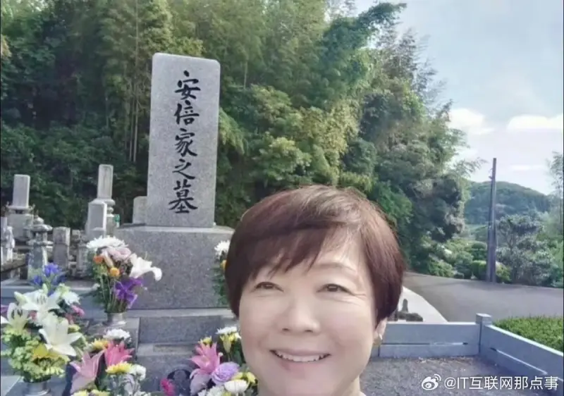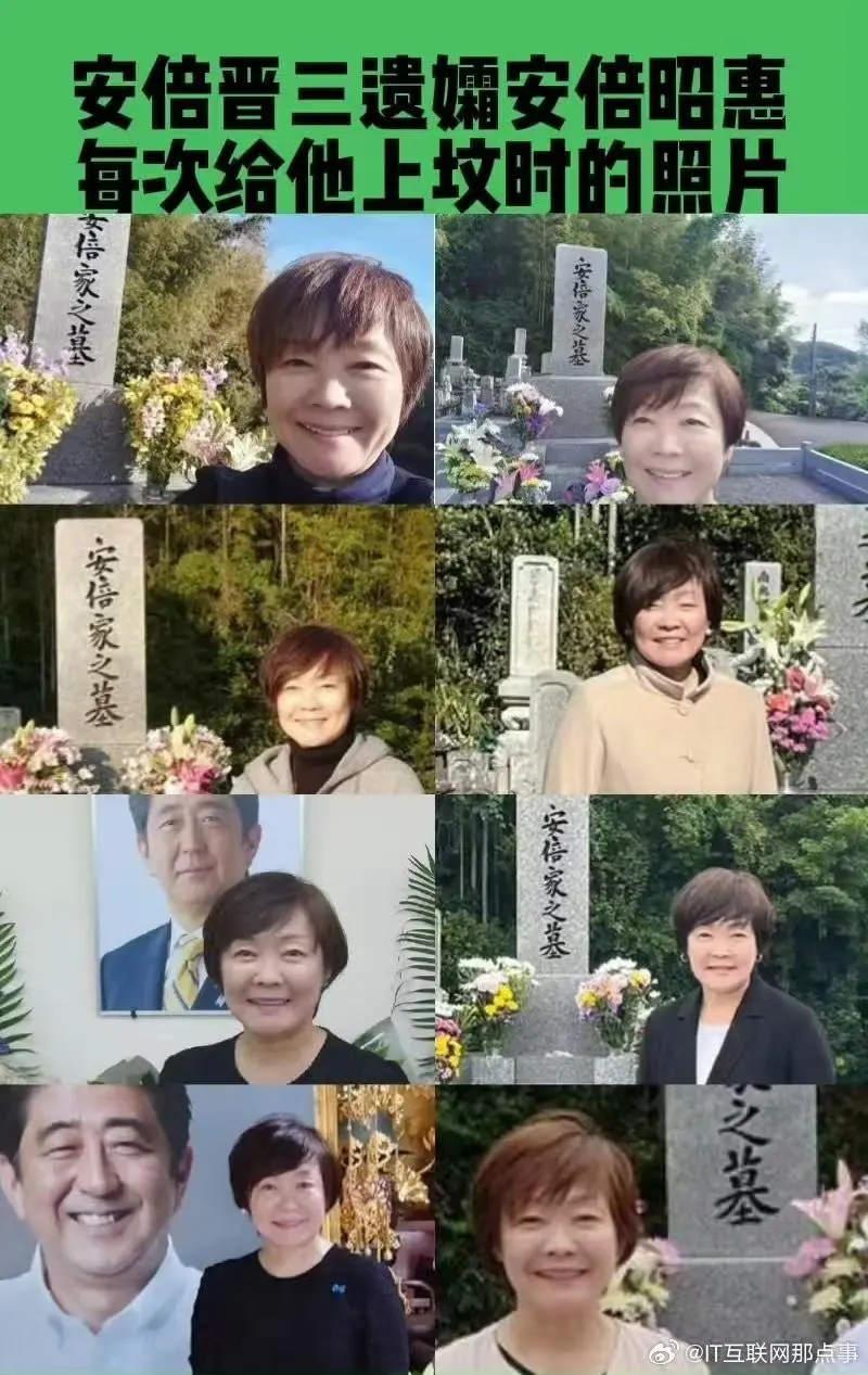 安倍晉三遺孀安倍昭惠每次給他上墳的自拍照片……