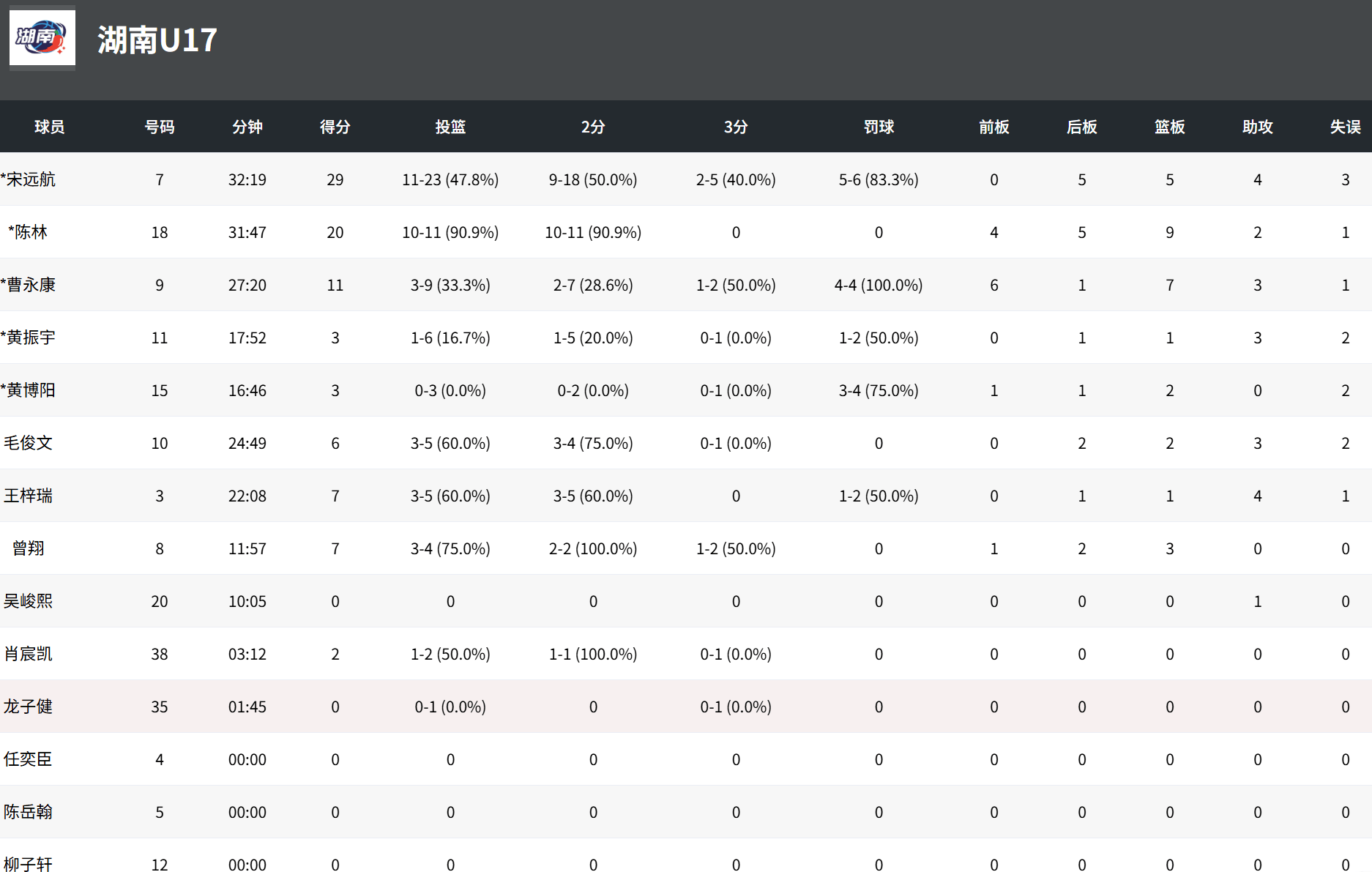 湖南U17:宋遠航28分、語中陳林20分9籃板、流言亮外曹永康11分