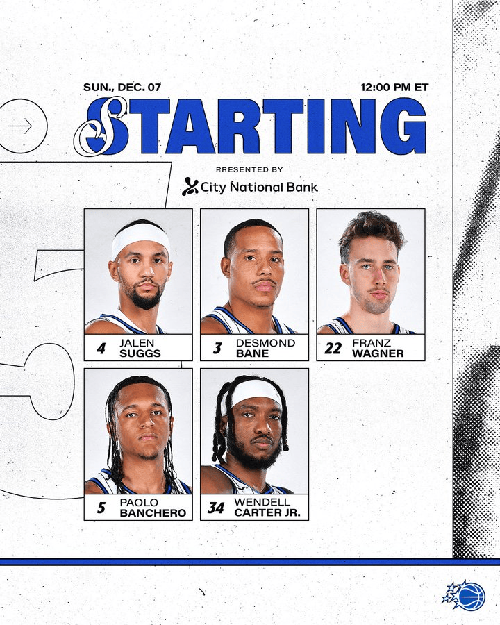 虎撲12月08日訊 魔術(shù)更新官方社媒,公布了今日比賽的術(shù)首薩格斯班首發(fā)陣容。