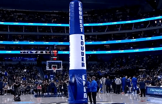 比賽的行俠第四節(jié),比賽暫停期間,球迷氣棒吉祥物引導(dǎo)獨(dú)行俠主場球迷大聲歡呼,歡呼讓充氣棒逐漸變大。讓充