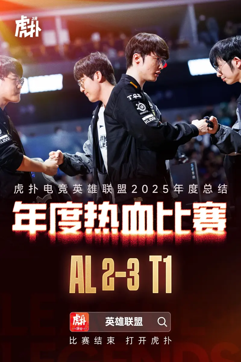 經(jīng)過(guò)JRs的評(píng)選,【S15:AL 2-3 T1】以58.8%得票率當(dāng)選2025英雄聯(lián)盟賽事年度熱血比賽