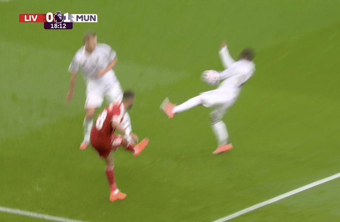 虎撲10月20日訊 英超第8輪焦點(diǎn)戰(zhàn),利物浦vs曼聯(lián),德手點(diǎn)球上半場(chǎng)比賽,處于曼聯(lián)球員阿瑪?shù)乱伤圃诮麉^(qū)內(nèi)手球,位置物浦但主裁奧利弗沒有表示。板官不判