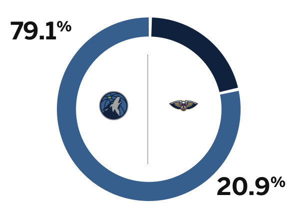 [流言板]ESPN預(yù)測(cè)森林狼vs鵜鶘:森林狼勝率79.1%,鵜鶘勝率20.9%