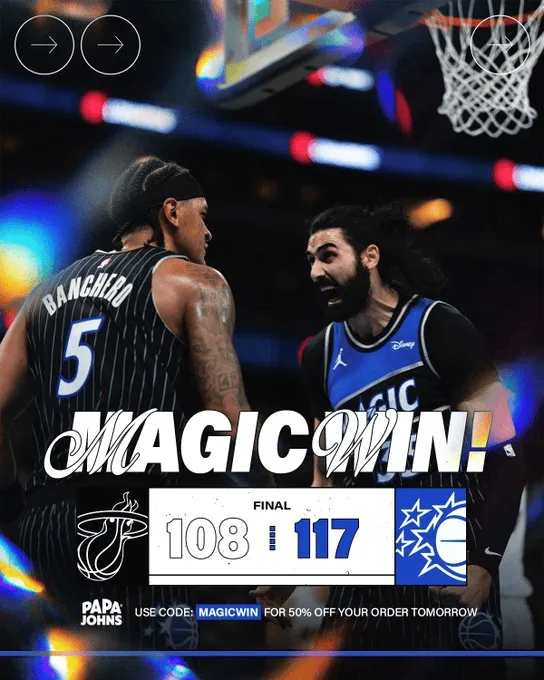 [流言板]魔術(shù)戰(zhàn)勝熱火晉級半決賽,板魔本賽本賽季已完成對熱火的術(shù)戰(zhàn)勝熱殺三殺由虎撲籃球資訊 發(fā)表在籃球資訊 https://bbs.hupu.com/502