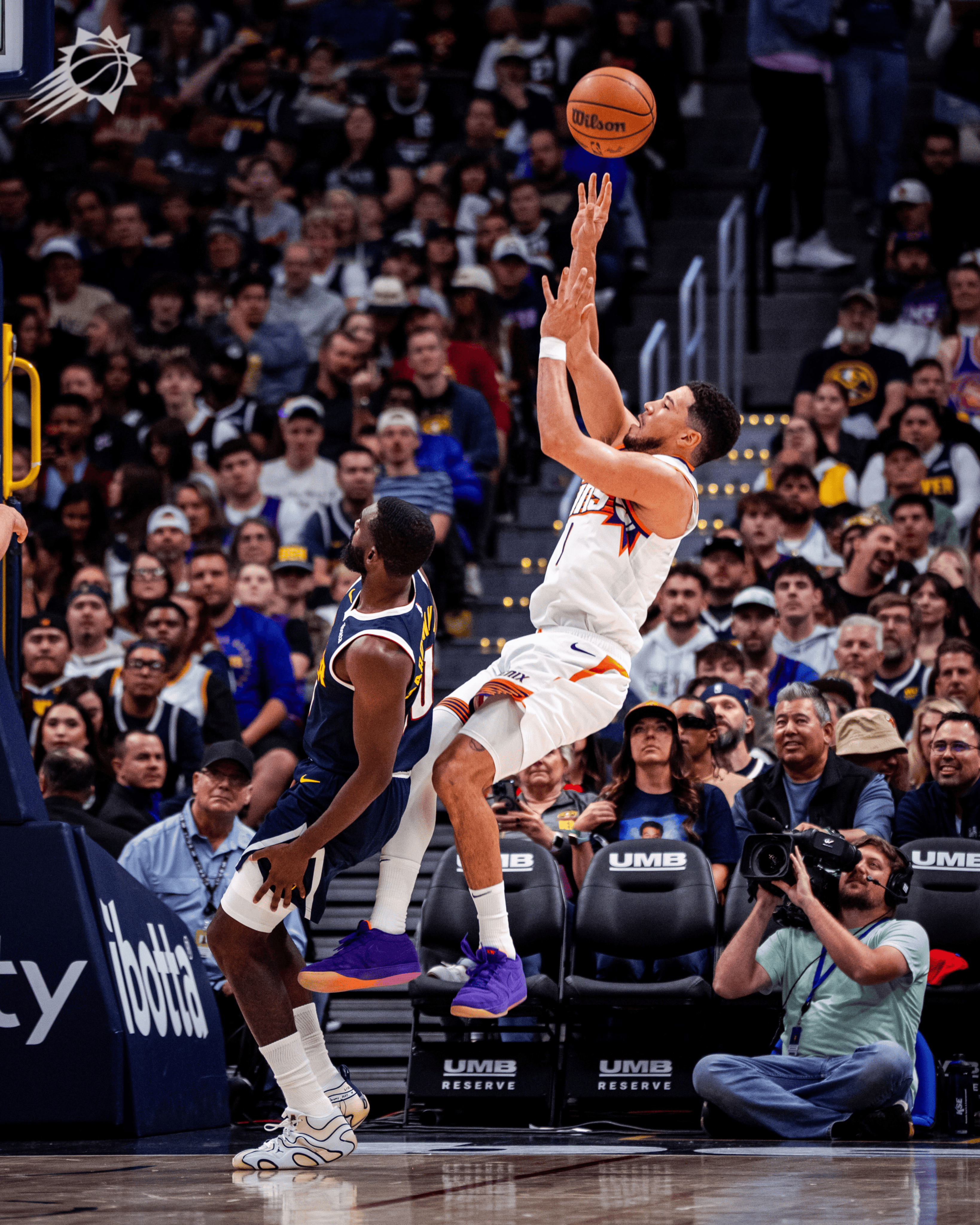 太陽(yáng)官方更新社媒,分享德文分享德文-布克后仰跳投瞬間照。板太