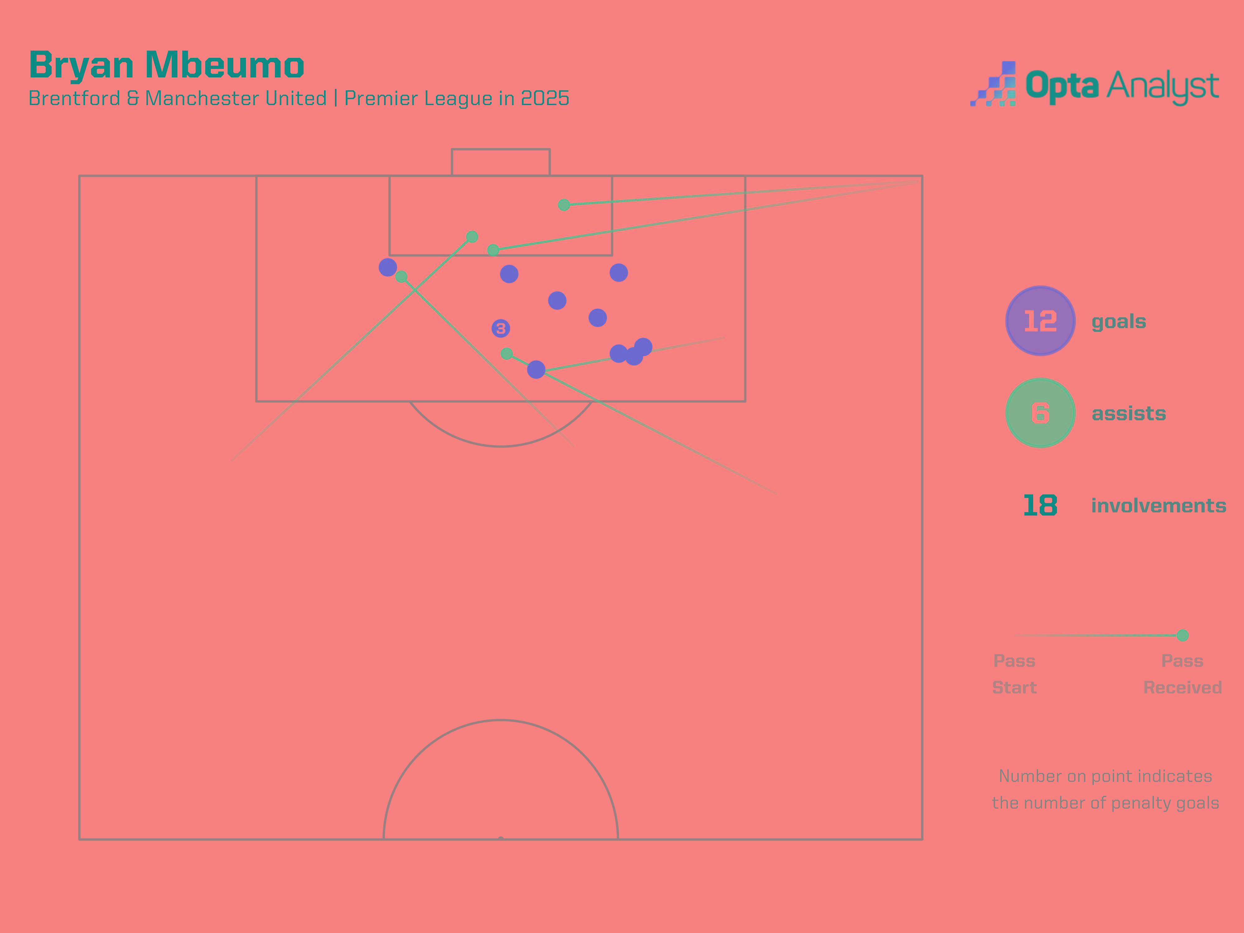 OPTA數(shù)據(jù)統(tǒng)計(jì),超參次于姆伯莫在2025年已經(jīng)參與了18粒英超進(jìn)球(12球+6助)。進(jìn)球