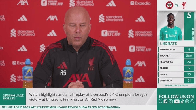 虎撲10月24日訊 利物浦主教練斯洛特出席對陣布倫特福德的賽前發(fā)布會。