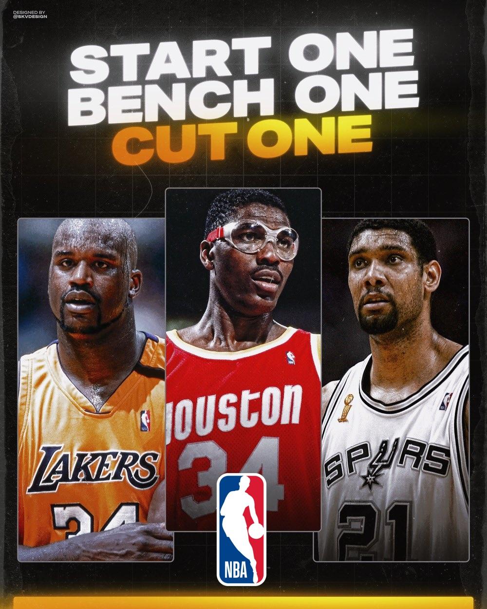 圖中三名球員是替補:沙奎爾-奧尼爾,哈基姆-奧拉朱旺和蒂姆-鄧肯。裁掉