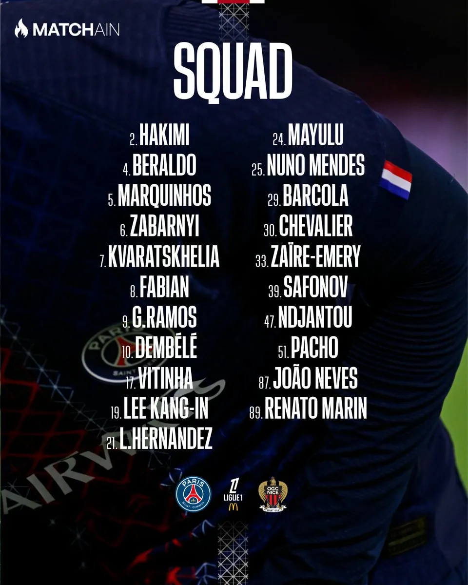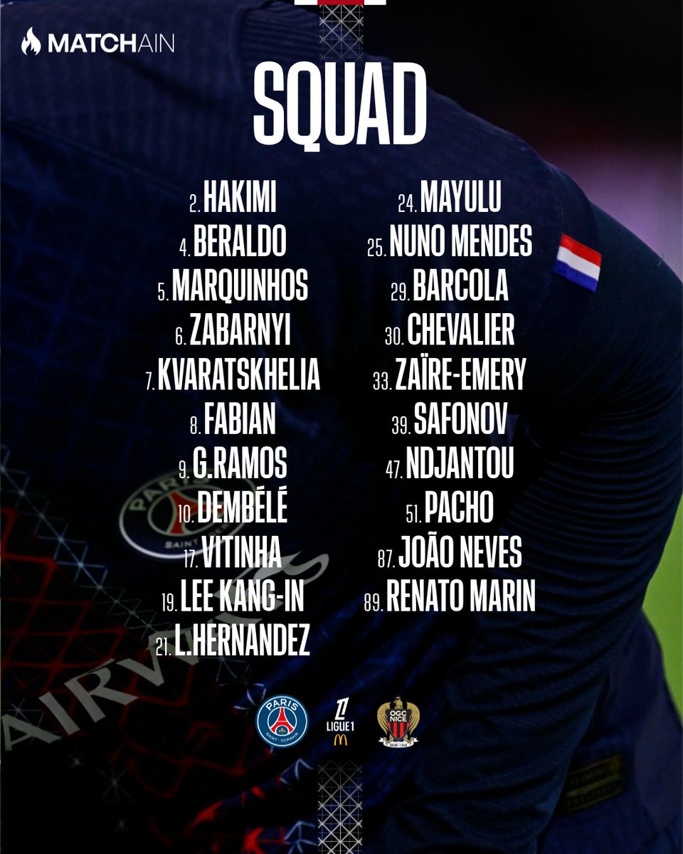 虎撲11月01日訊 法甲聯(lián)賽第11輪,巴黎圣日耳曼將坐鎮(zhèn)主場迎戰(zhàn)尼斯。賽前,巴黎官方公布了本場比賽的大名單。