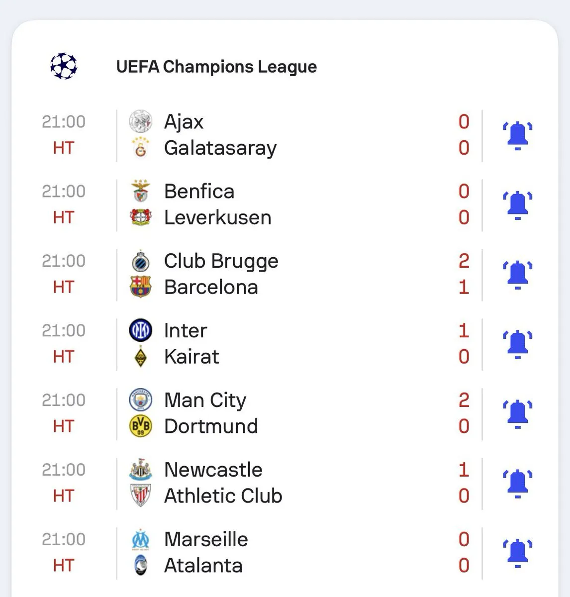 虎撲11月06日訊 歐冠聯(lián)賽階段第四輪第二比賽日的爭奪正在進行中。上半場比賽結(jié)束后,顯沉7場比賽中有3場比賽戰(zhàn)成0-0,悶今7場比賽一共只產(chǎn)生了7個進球。日場