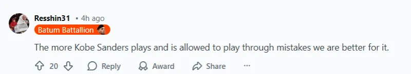 -(20贊)科比-桑德斯打得越多,允許他在失誤中打得越多,我們就越受益。