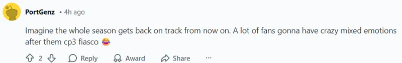 -想象一下,從現(xiàn)在開始整個(gè)賽季都回到正軌。經(jīng)歷了保羅風(fēng)波后,很多球迷的心情肯定會(huì)異常復(fù)雜