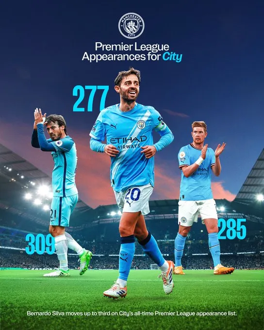 [流言板]B席第277次代表曼城出戰(zhàn)英超比賽,排名隊(duì)史第三