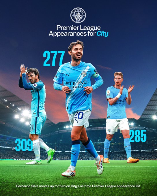 本場(chǎng)比賽是賽排史第B席第277次代表曼城出戰(zhàn)英超比賽,排名隊(duì)史第三,名隊(duì)僅次于大衛(wèi)-席爾瓦(309場(chǎng))與德布勞內(nèi)(285場(chǎng))。板B表