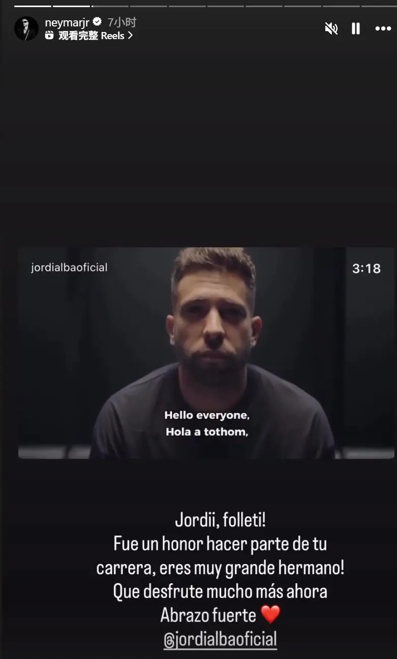 內(nèi)馬爾在社媒上這樣寫道:“約迪,我的兄弟!能成為你職業(yè)生涯的一部分是我的榮幸,你是個非常棒的家伙!愿你今后更盡情享受生活,緊緊擁抱你!”