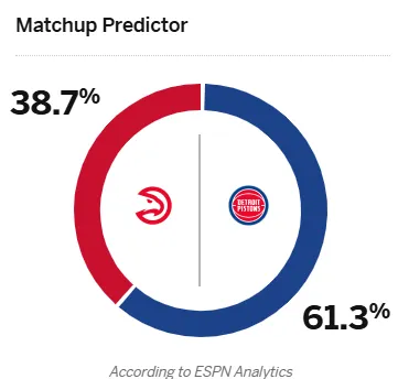 [流言板]ESPN預(yù)測明日比賽:活塞勝率61.3%,老鷹勝率38.7%