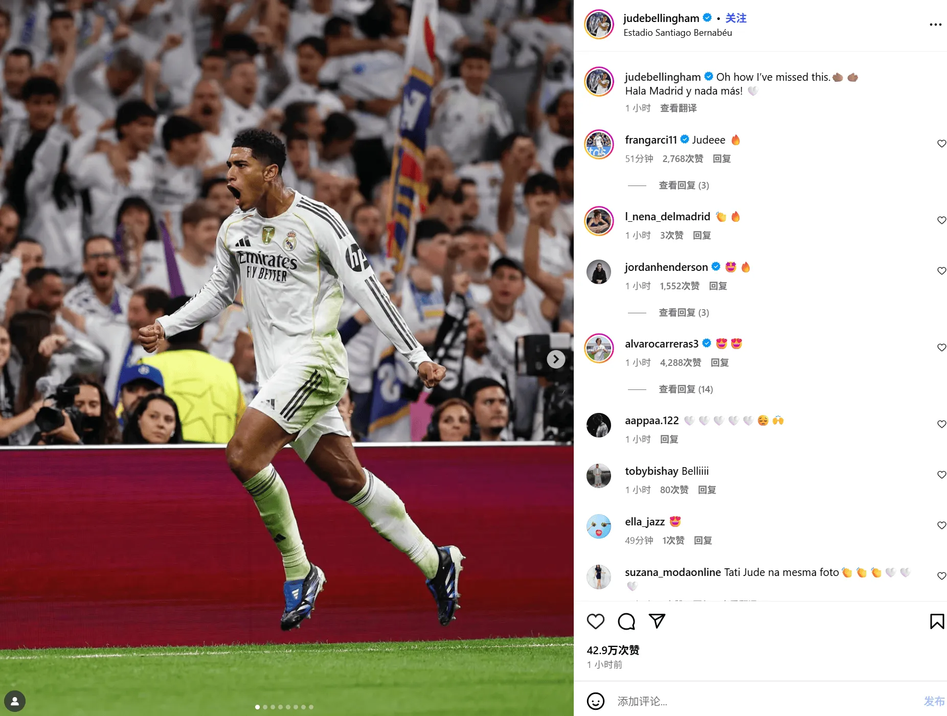 [流言板]打進制勝球后貝林厄姆發(fā)文:我可太想念這感覺了,加油皇馬加油皇馬由虎撲足球資訊 發(fā)表在國際足球資訊 https://bbs.hupu.com/482