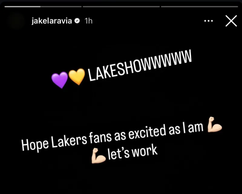 隨后,拉拉維亞更新IG動(dòng)態(tài),描述了自己當(dāng)下加盟湖人的心情,并配文: