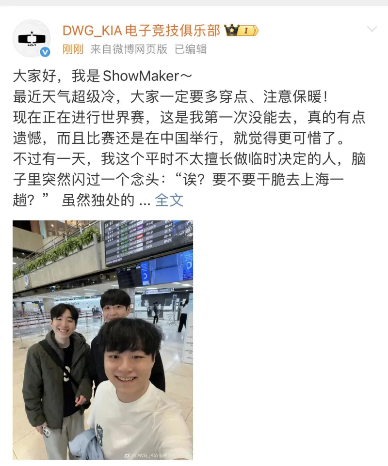 虎撲10月28日訊 DK發(fā)布ShowMaker選手親手撰寫長文:
