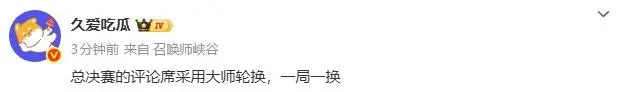 瓜主爆料:總決賽的評(píng)論席采用大師輪換,一局一換