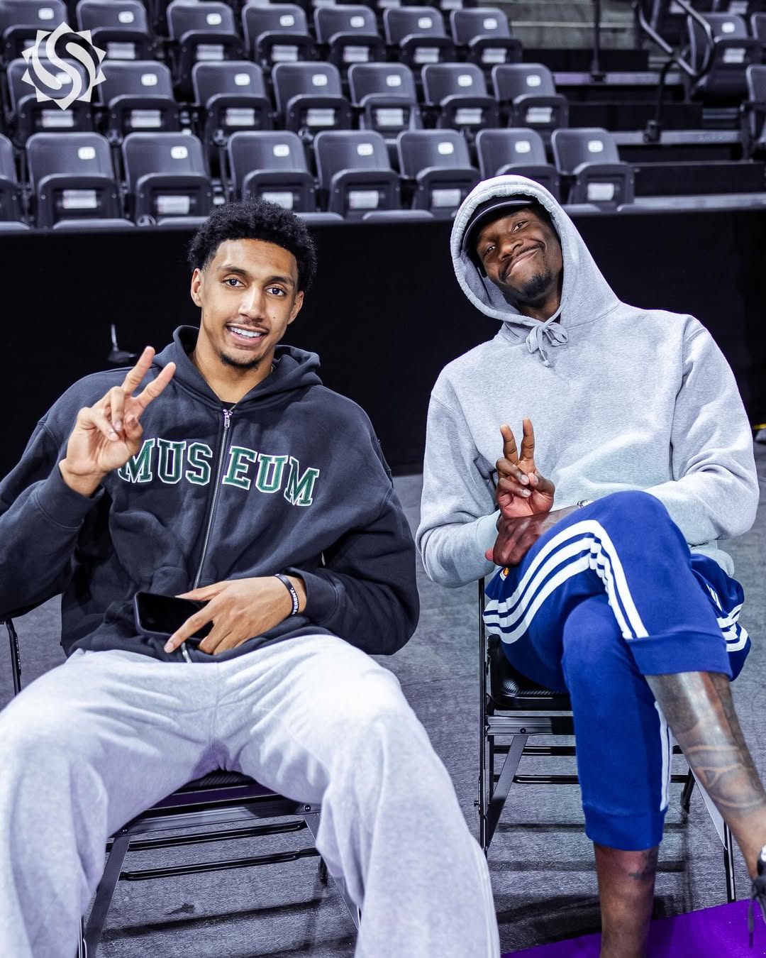虎撲12月04日訊 太陽ins分享太陽球員鄧恩與海耶斯現(xiàn)場(chǎng)觀戰(zhàn)山谷太陽比賽。