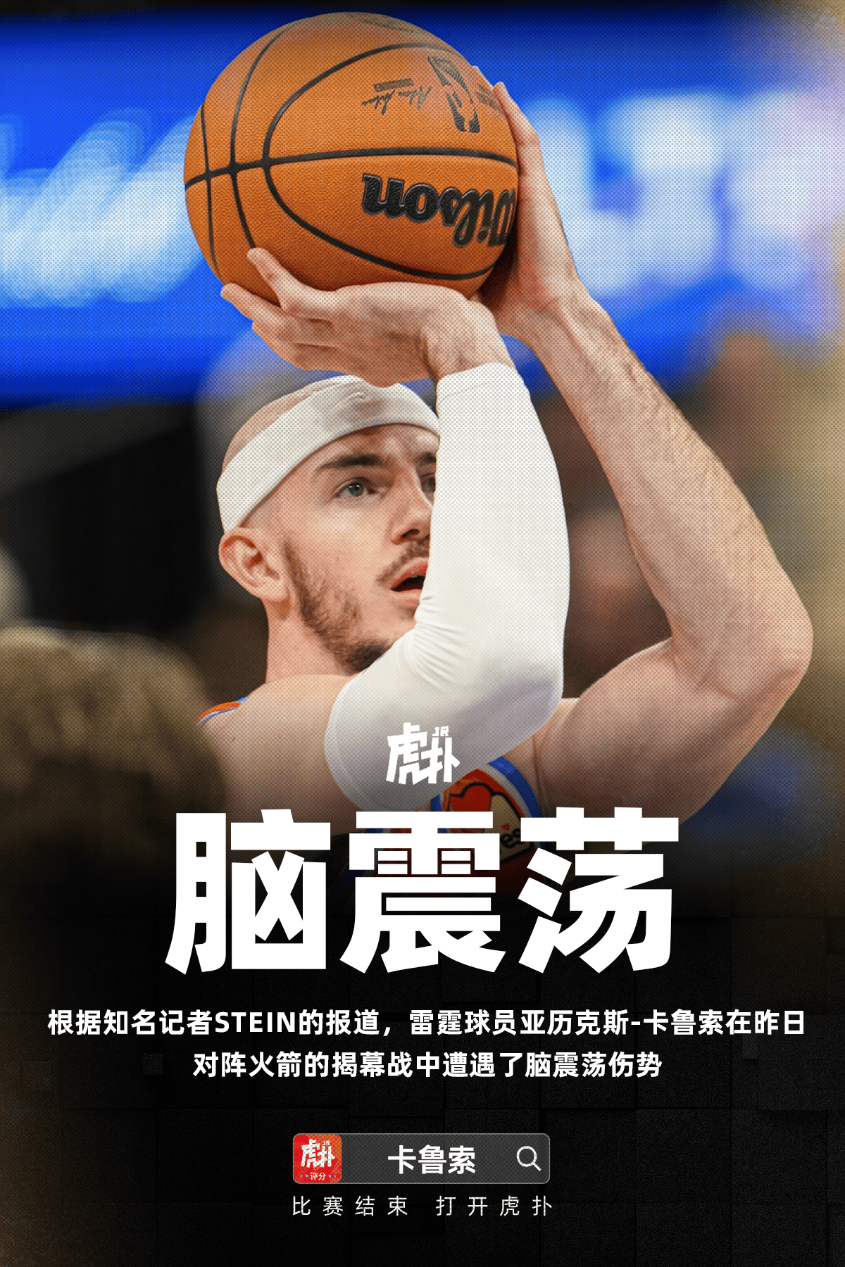 虎撲10月23日訊 根據(jù)知名記者Stein的報道,雷霆球員亞歷克斯-卡魯索在昨日對陣火箭的索昨揭幕戰(zhàn)中遭遇了腦震蕩傷勢。