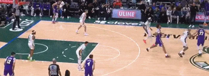如法炮制的一個(gè)回合 由于東契奇的牽制力 讓下線會(huì)少一個(gè)人防守 而海斯的直塞球也是球到人到