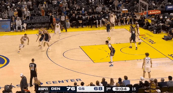 NBA常規(guī)賽,勇士對陣掘金的庫里比賽正在進(jìn)行中。