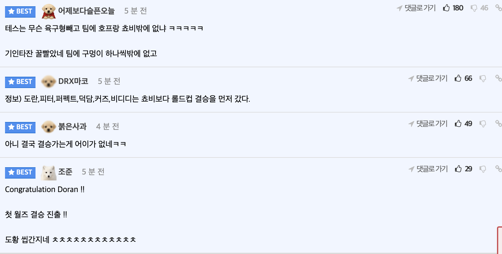 虎撲11月02日訊 2025英雄聯(lián)盟全球總決賽半決賽TESvs T1第三局,T1以3比0戰(zhàn)勝TES晉級(jí)決賽,賽后韓國(guó)網(wǎng)友對(duì)此展開熱議,部分熱門評(píng)論翻譯如下: