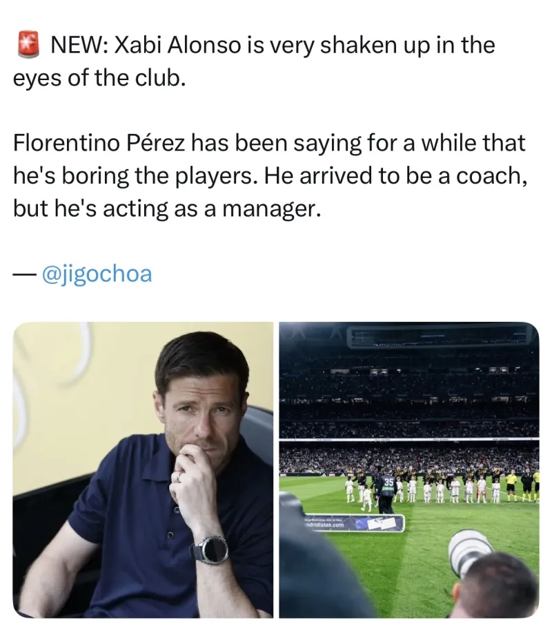 弗洛倫蒂諾·佩雷斯已經(jīng)說了一段時(shí)間,阿隆他正在讓球員感到厭煩。索讓他原本是最新以“主教練”的身份到來,但現(xiàn)在的消息行為更像是在當(dāng)總經(jīng)理/管理層角色。