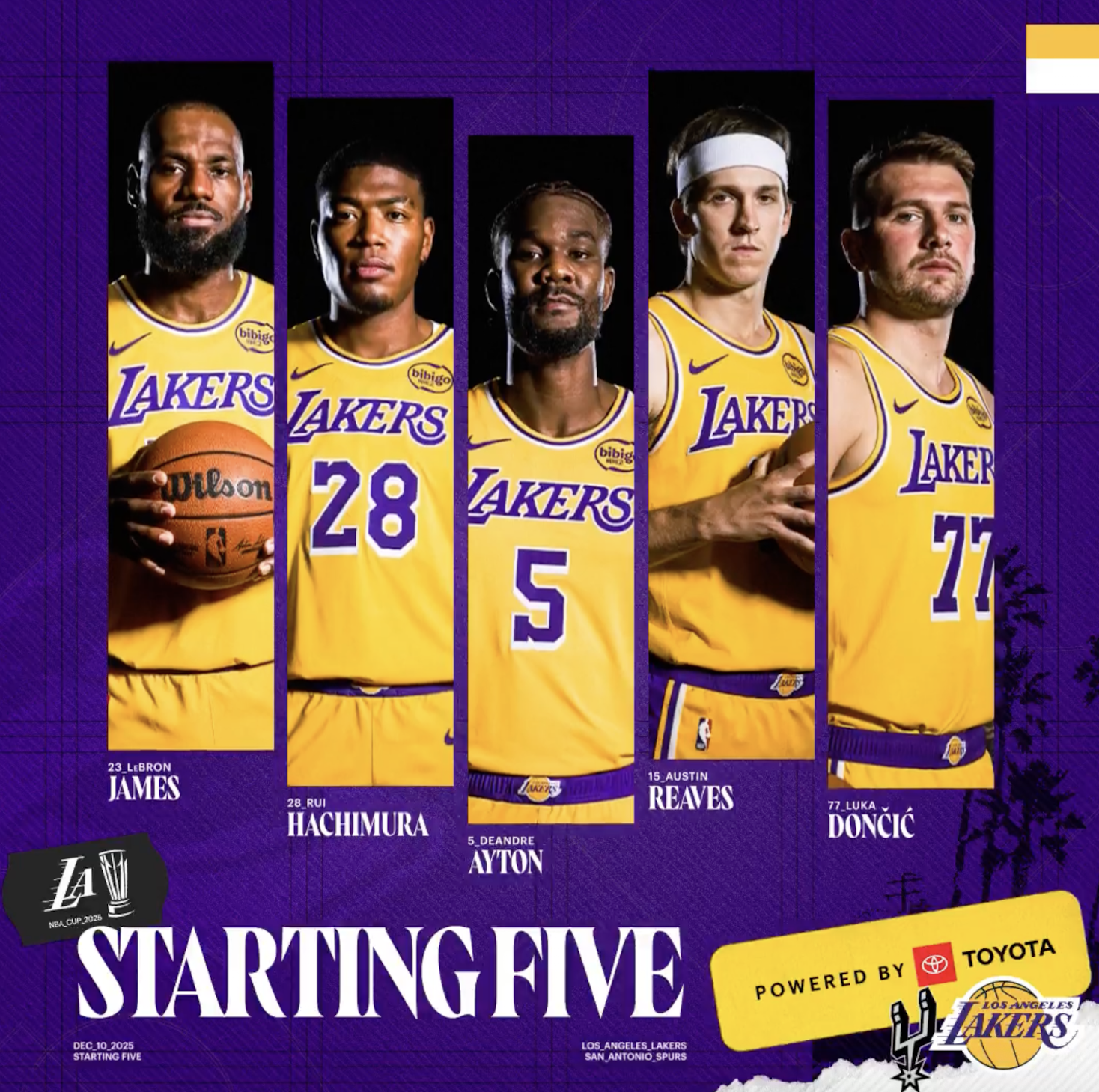 [流言板]湖人今日首發(fā):詹姆斯、東契奇、八村壘、里夫斯、艾頓